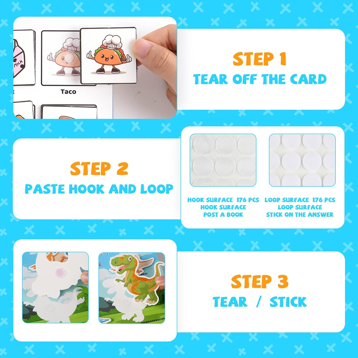 - Stickerele se lipesc pe piesele mobile, fiind un sistem cu velcro (arici). Astfel ca acestea devin reutilizabile – repozitionabile.