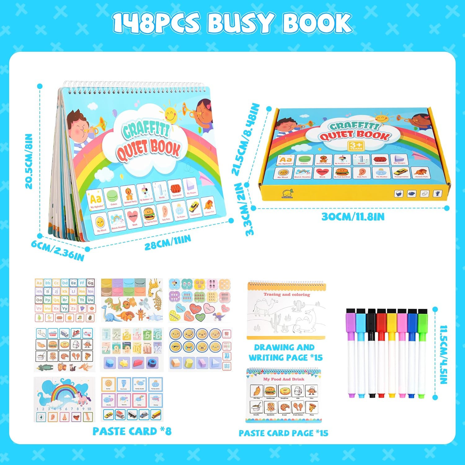 Caracteristici Carte Montessori cu activitati educative Stickere reutilizabile Carioci: