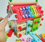 • xilofonul din metal poate fi folosit ca si acoperis pentru casuta ,dar poate fi utilizat si ca o activitate separată de masă  impreuna cu cele  doua betisoare  pentru a putea ajunge la zgomotul preferat al celor mici, fiecare culoare avand un sunet unicat