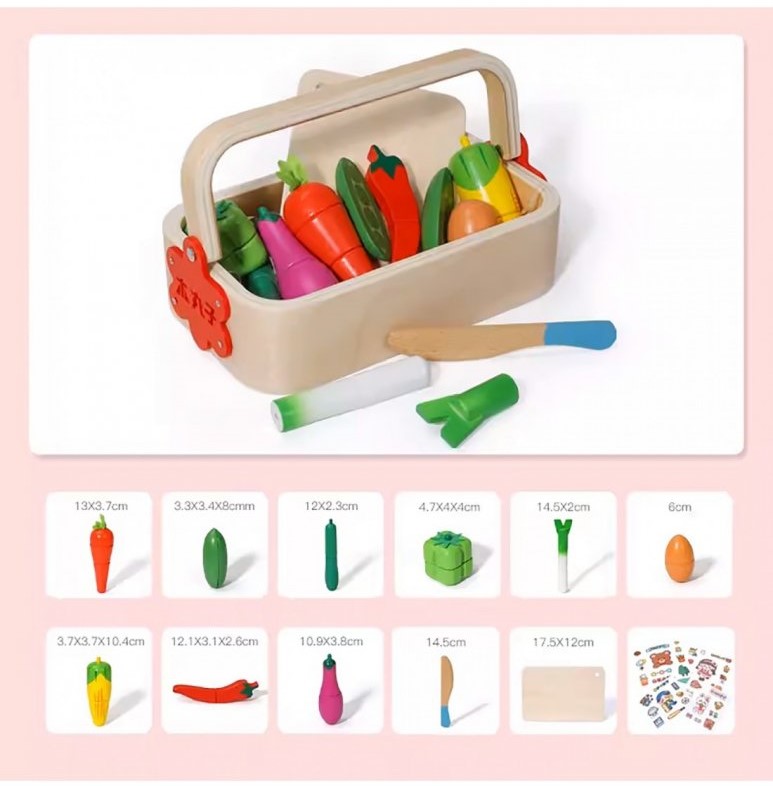 Caracteristici Cosul cu Legume de feliat din lemn Jucarie pentru bucatarie :