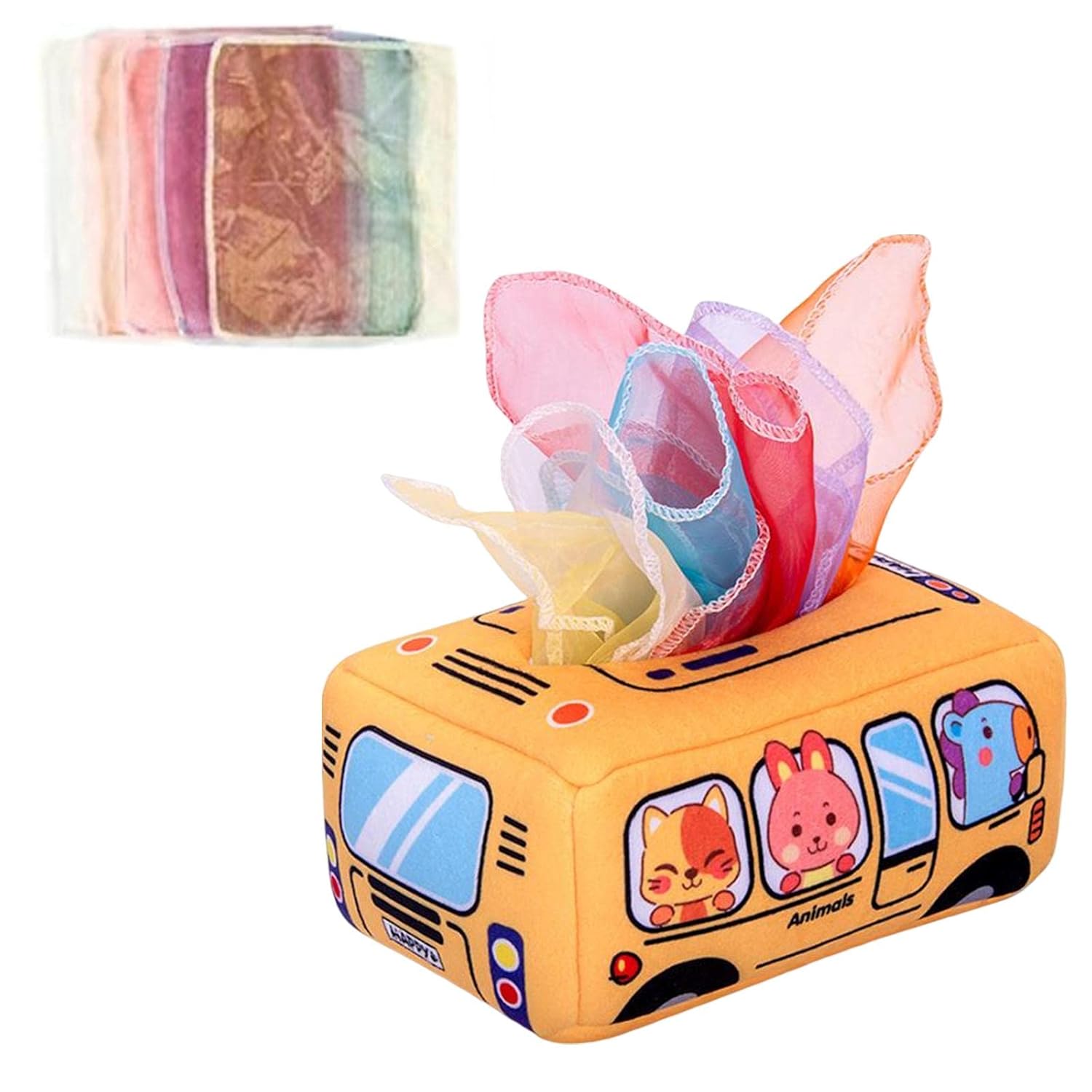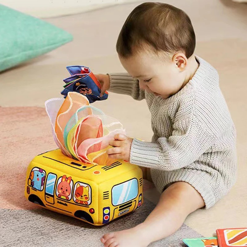 Cutiuta cu servetele moi Autobuz Cub senzorial Activitati bebe