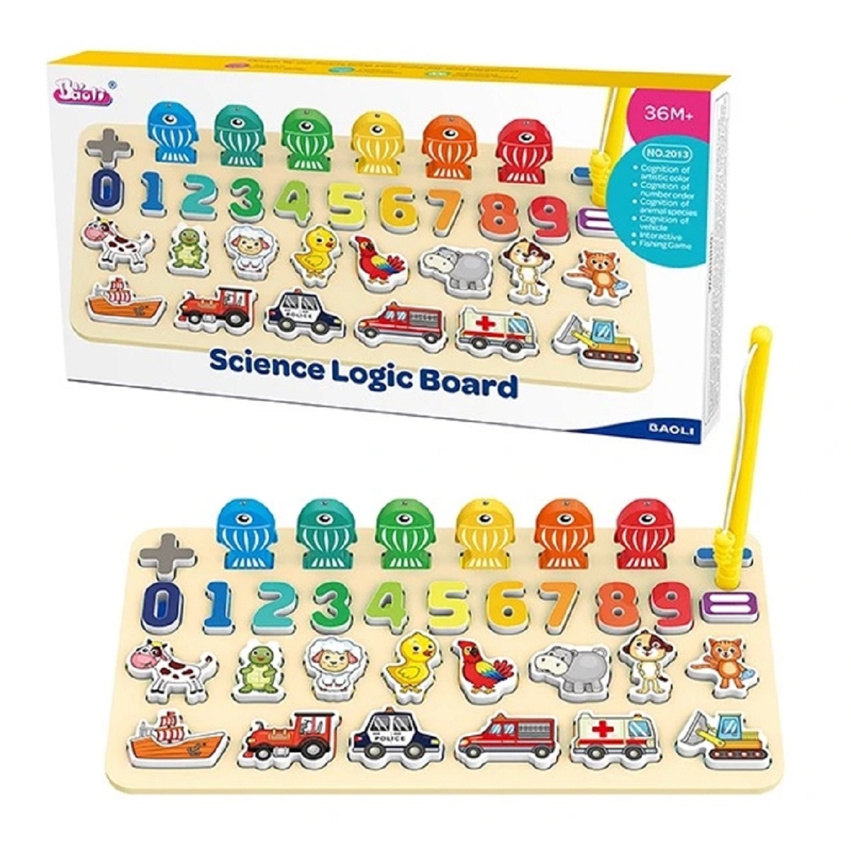 Acest joc este destinat educarii copiilor intr-un mod interactiv, ajutandu-i sa invete animalele si cifrele, sa recunoască diferite forme si culori, si sa dezvolte abilitati motorii fine prin potrivirea formelor in locurile corespunzatoare. Jocul de pescuit cu magneti adauga un element de coordonare ochi-mana si de distracție, sporind angajamentul copilului in activitatea de invatare. Este un joc care stimuleaza recunoașterea vizuala, memoria si logica intr-un mod placut si educativ.