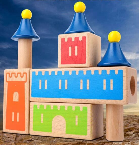 Caractersidtici Joc interactiv Castel Cuburi de constructie din lemn: