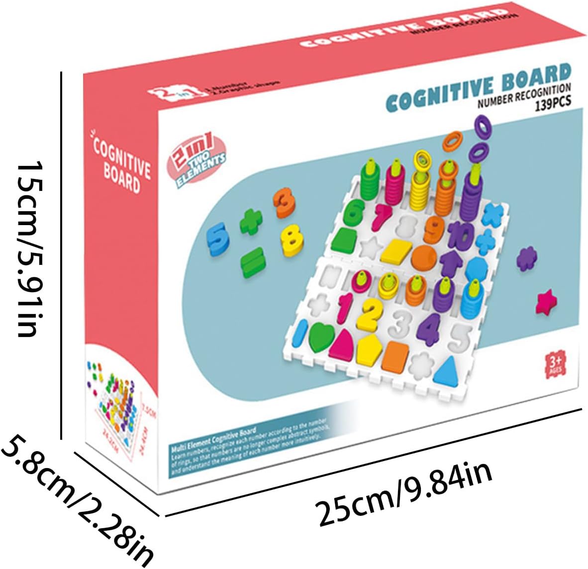 O tabla cognitiva pentru copii cu varsta de peste 3 ani,conceputa sa ajute la recunoasterea numerelor,culorilor si formelor geometrice. Copii pot potrivi si sorta piesele pe culori si forme diferite.