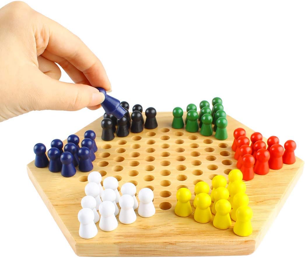 - Dame chinezesti: setul tabla de dame chinezesti include un total de 60 de jetoane cu cate 10 in fiecare dintre cele 6 culori. Ideal pentru 2 pana la 6 jucatori, obiectivul este de a muta sau sari cele 10 jetoane dintr-un triunghi in opus,invatand gandirea strategica si imbunatatirea abilitatilor sociale de cooperare.