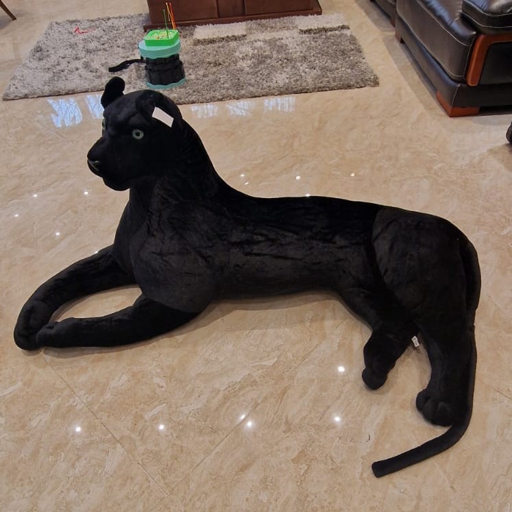 Jucaria din plus sub forma unei pantere negre(ras) este acum si un accesoriu,personaj pentru decorarea camerei sau un cadou simbolic. Animalul salbatic de culoare neagra si dimensiuni mari sau mici sta intr-o pozitie relaxanta fata de realitate.