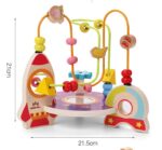 Jucarie din lemn pentru dexteritate Montessori cu forme,culori,labirint si circuit. Labirintul racheta are o baza solida, circuitul cu bile din metal si plastic colorate va fi o distractie oentru copii. Un joc cu bile abac pentru recunoasterea culorilor si numararea.