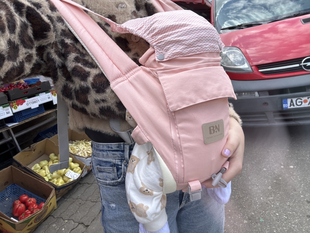 Am comandat marsupiu culoare gri. Nu mă așteptăm să fie atât calitativ și drăguț. Spatele și mânele vă spun mulțumesc! Voi mai comanda unul să-l fac cadou.