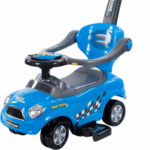 Inspirata din masina populara Mini Cooper. Este dotata cu volan ,cu buton pentru claxon si scaun comod cu loc de depozitare pentru jucarii