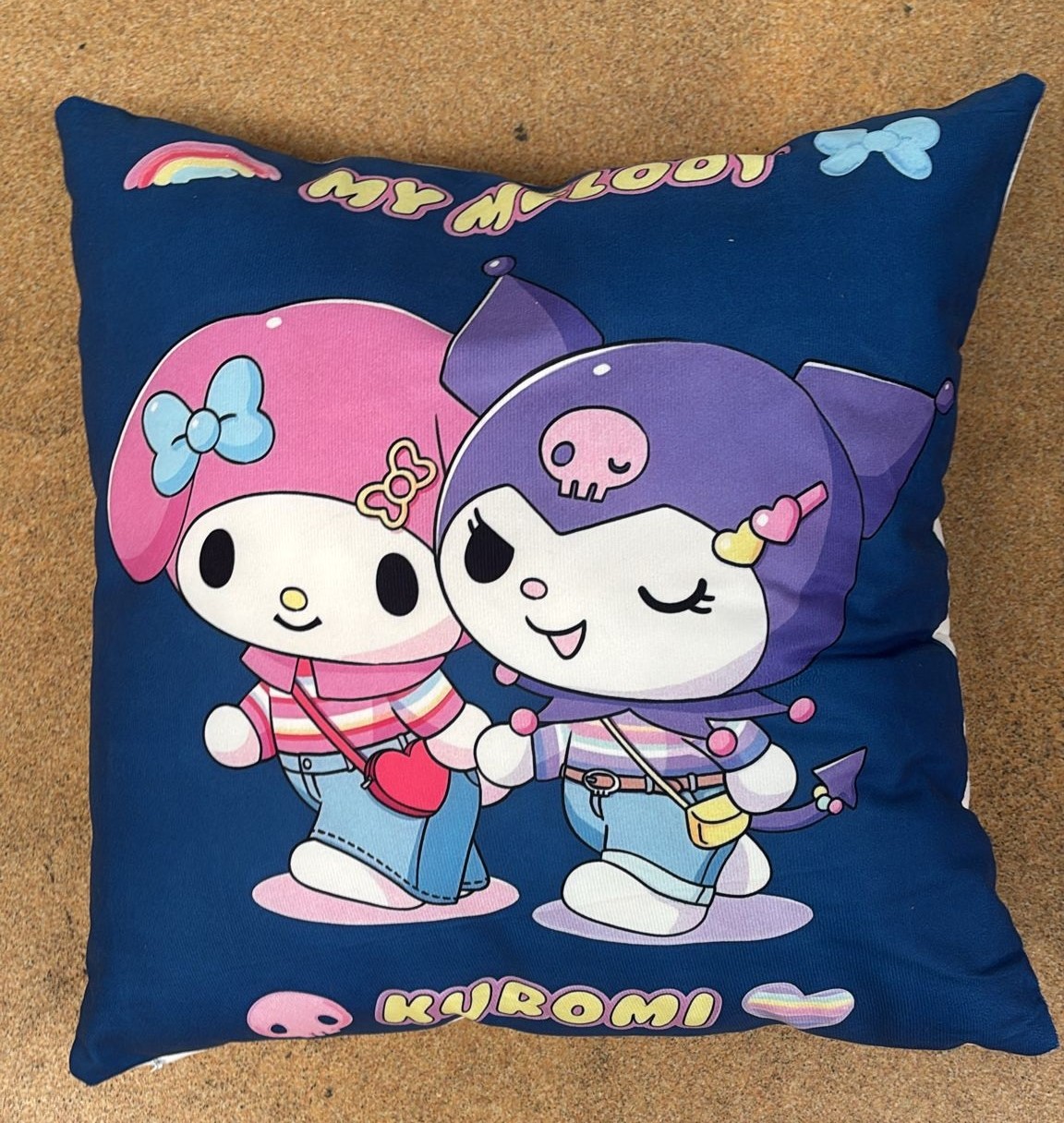 Jucarie cu dubla functionalitate ,perna si jucarie moale cu personaje din desene animate. Jucaria sub forma de papusa japoneza si face parte din seria Hello Kitty. Este un iepuras alb cu o personalitate puternica,captivand inimile fanilor Sanrio din lumea intreaga. Kuromi este nascuta chiar in ziua de Halloween si i se mai spune si Frumusete neagra.. Fetitele iubesc cele doua personaje,acum cu aceasta perna vor fi mai aproape una de cealalta.