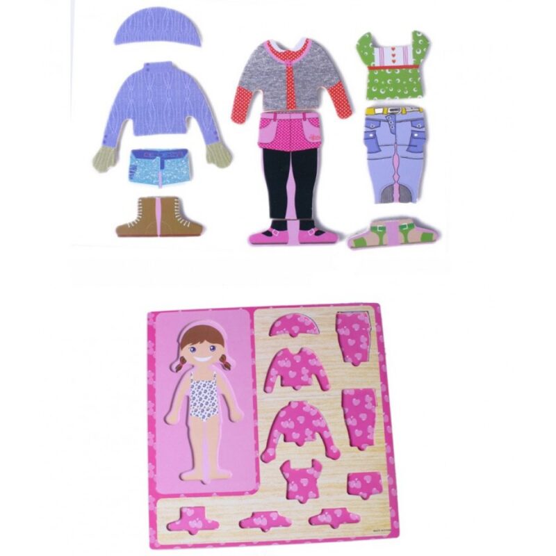 Caracteristici Puzzle din lemn incastru imbraca fetita si baiatul: