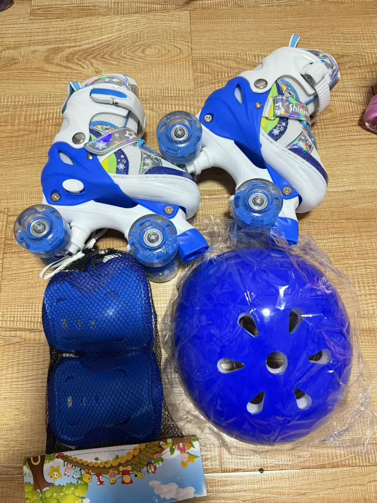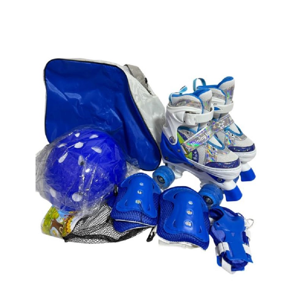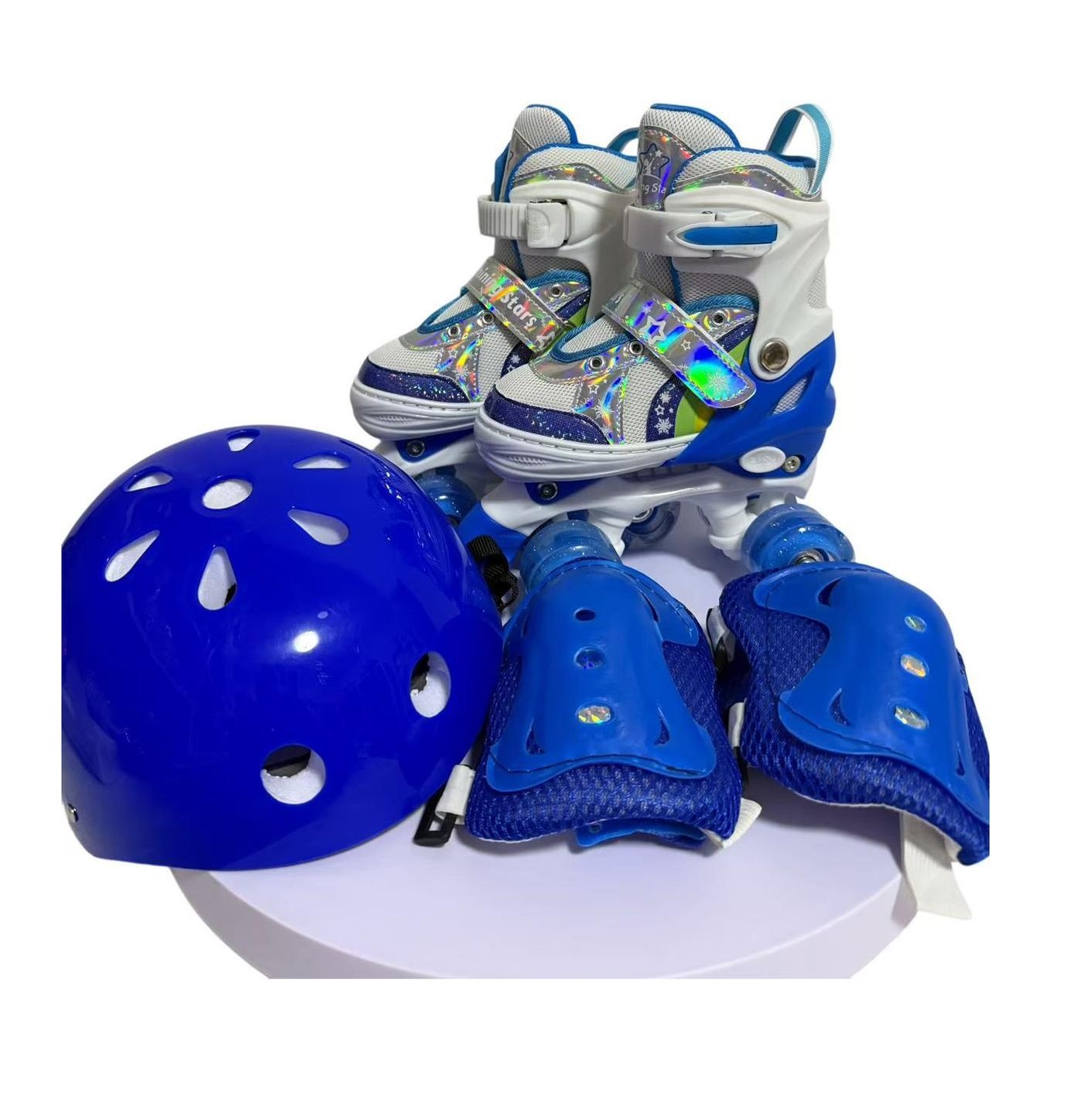 Role Bleu cu Protectii 4 roti incepatori reglabile Lumini Frana Patine