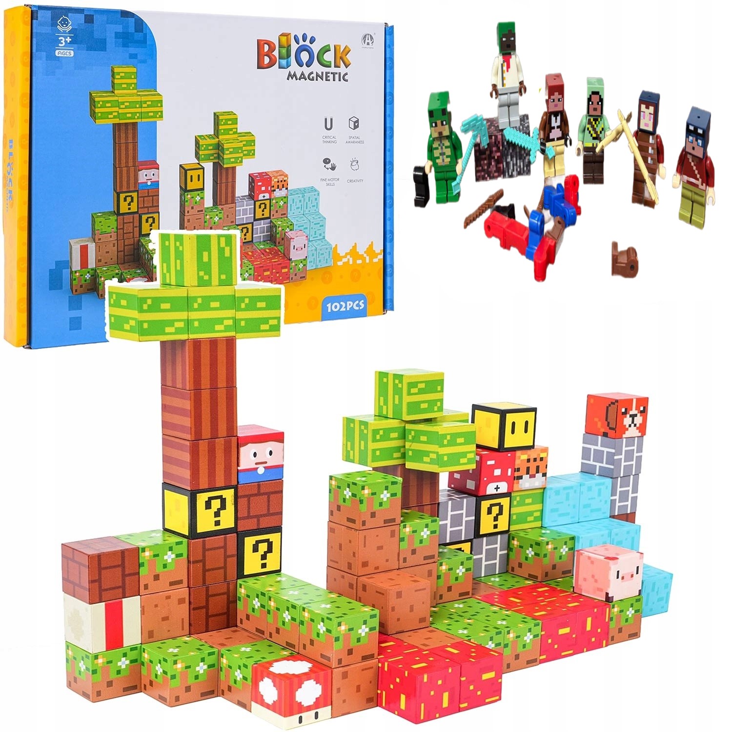 Set 104 Cuburi magnetice 6 Figurine MineCraft Magnetici Joc Stem