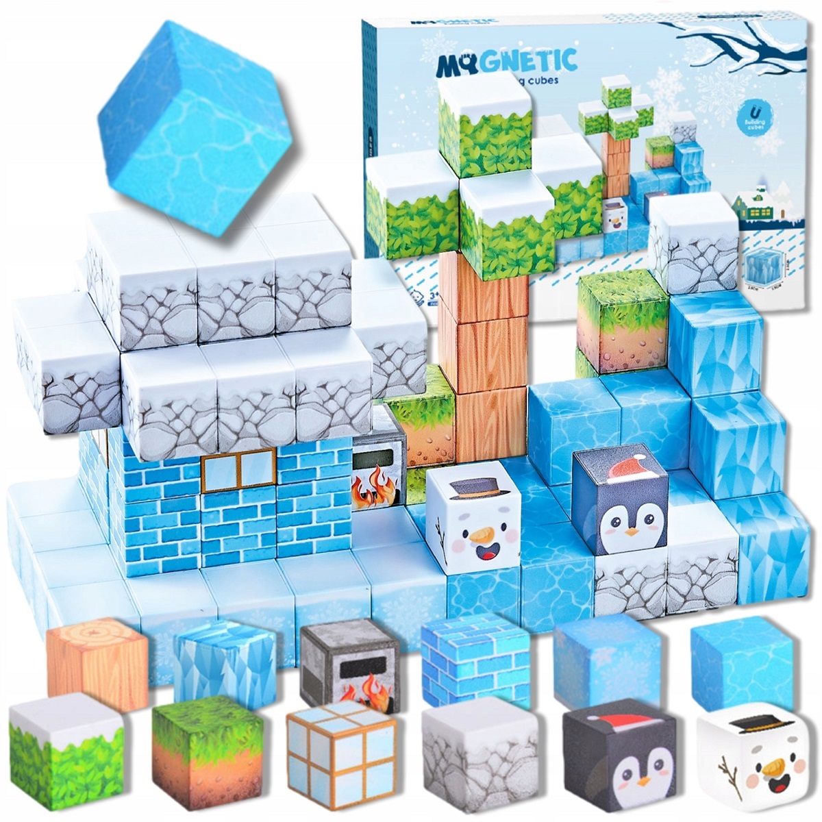 Set 113 Cuburi magnetice Minecraft Ice Jucarii Stem de construit