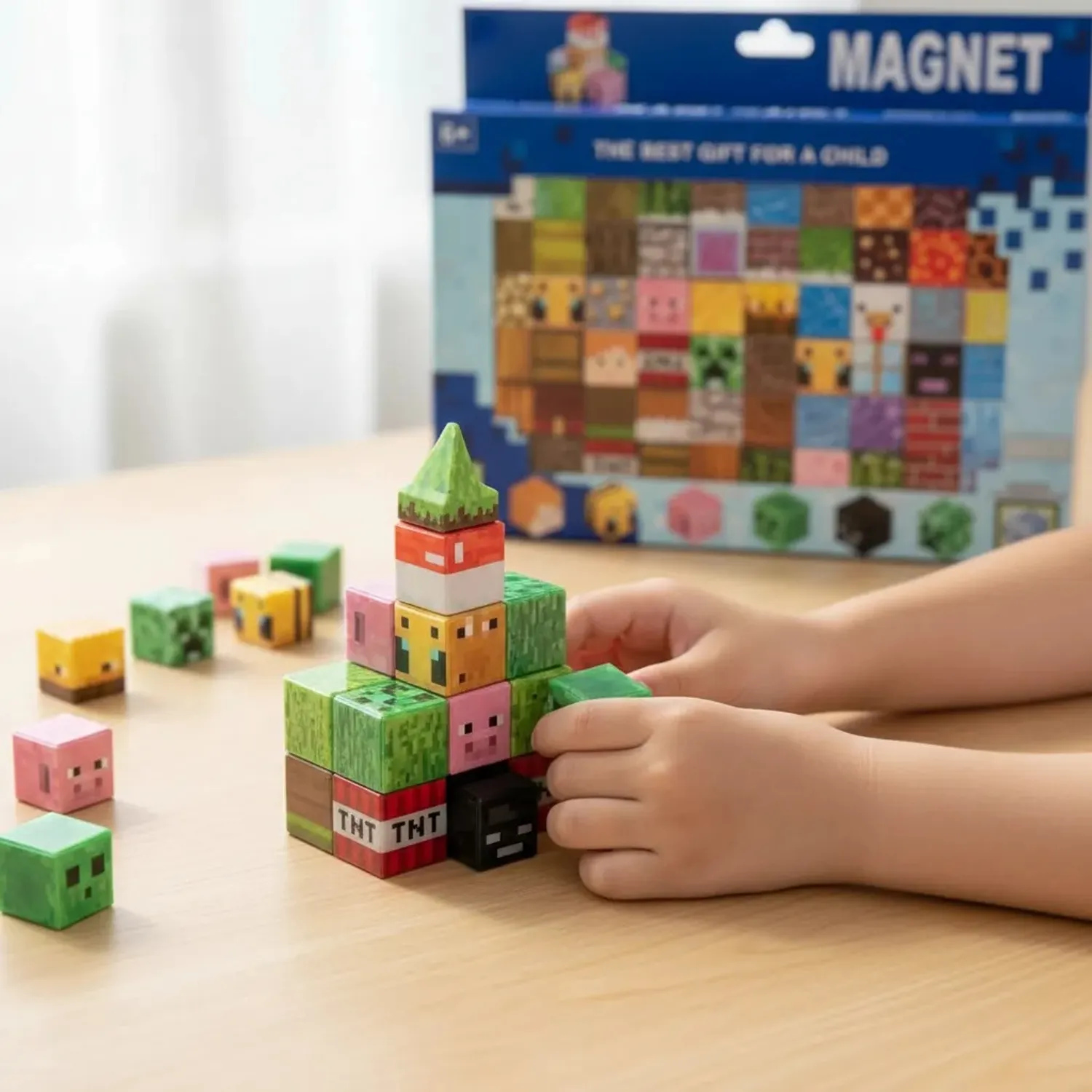 Set 60 Cuburi magnetice MineCraft Magnetic Jucarii Stem de construit