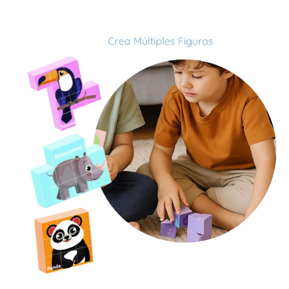 Un set de 9 cuburi magnetice cu tematica animale din padure conceput pentru a forma un puzzle cu animale din padure. Cuburile pot fi asamblate in diferite forme,ca un cub rubik.