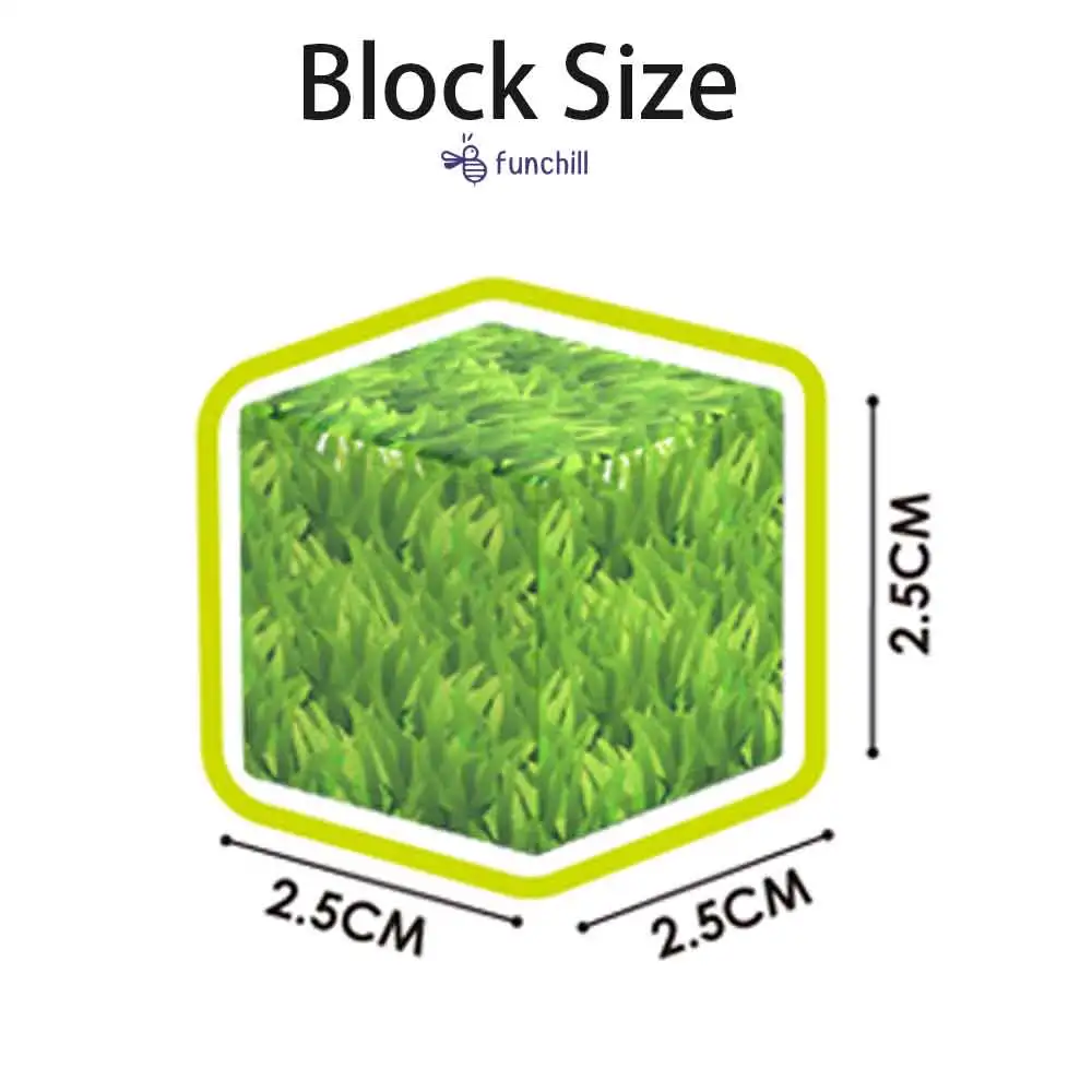 - Set complet de construcție: Include multiple blocuri de construcție în culori și modele diverse (apă, iarbă, pământ, piatră, trunchi de copac) care permit realizarea de decoruri variate.
