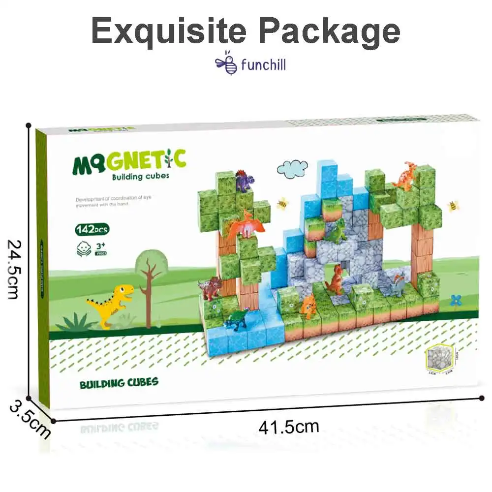 Set Cuburi magnetice Minecraft 142 piese cu figurine Dinozauri