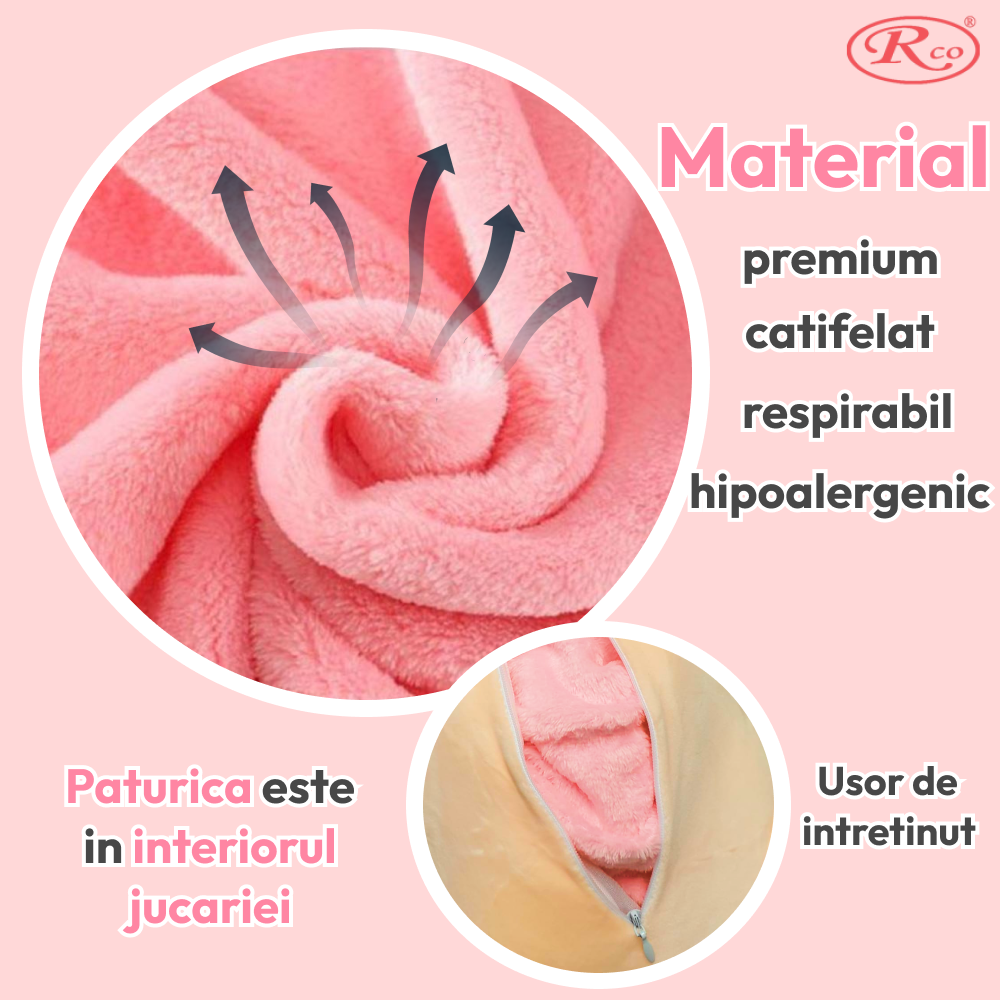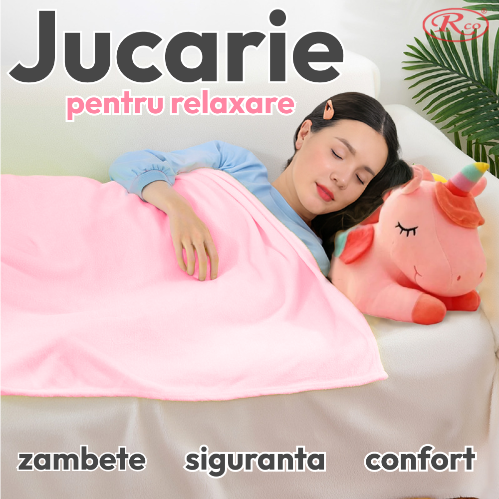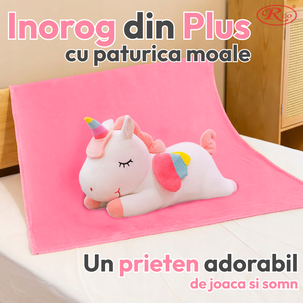 - Jucaria din plus sub forma de unicorn,impreuna cu paturica este o jucarie de imbratisat, un companion de nadejde pentru clipele de relaxare si o sursa de siguranta atunci cand cei mici adorm