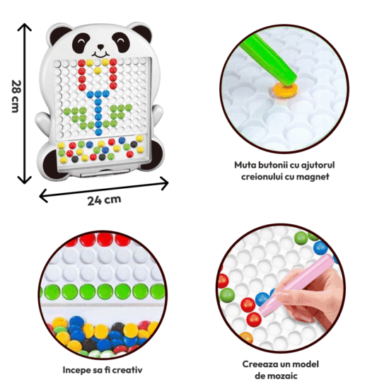 Caracteristici Tabla desen Joc Mozaic Panda piese colorate si pix magnetic :
