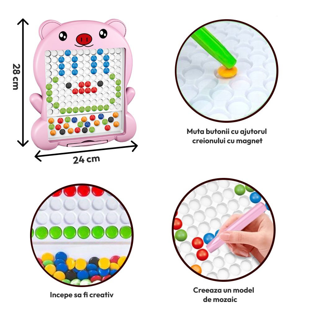 Tabla desen Joc Mozaic Purcelus piese colorate si pix magnetic