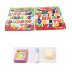 Aceasta placă cu doua fețe are o tabla pe o parte unde poate fi scris,desenat cu marker-ul,creta si o tabla magnetica pe cealalta parte. Pe tabla magnetica puteti invata copilul sa scrie sau sa numere punand piesele magnetice si anume litere -cifre.