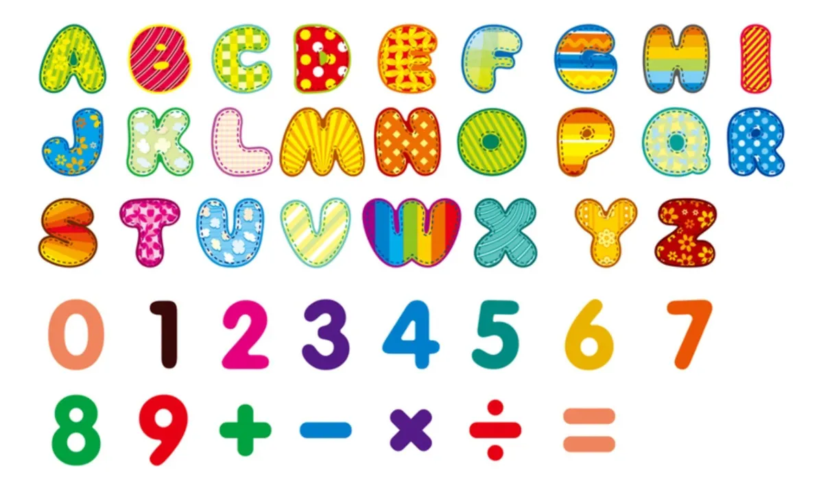- Setul include 41 de piese: litere, cifre in diferite culori