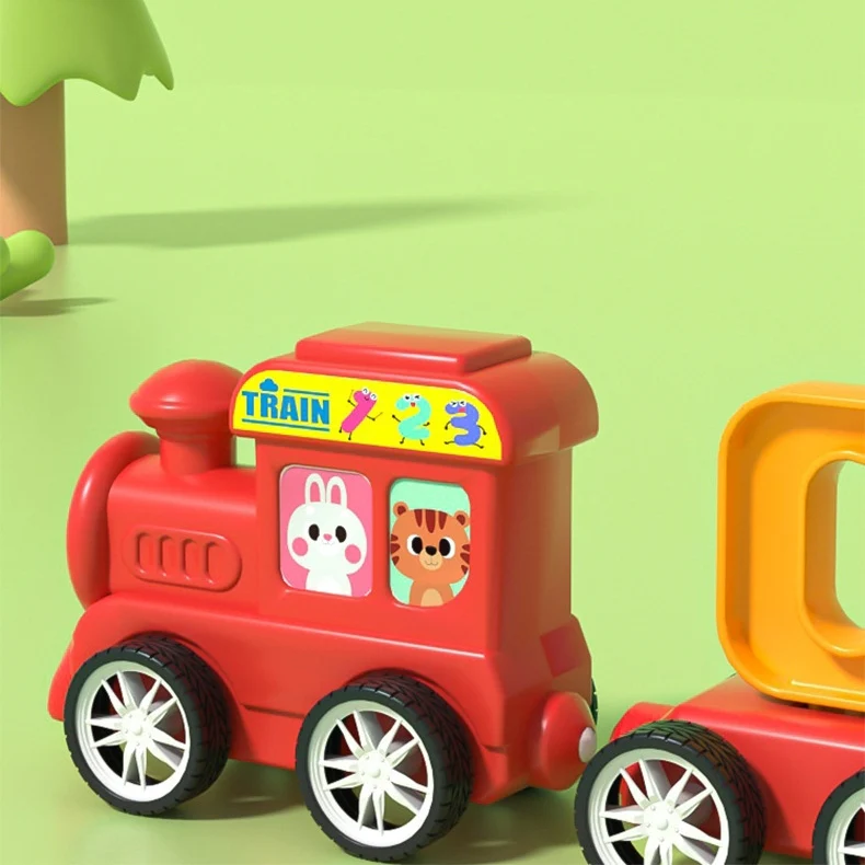 - este vopsit cu culori non-toxice, rotile sunt silentioase, iar prinderea se face usor intre piese,pe baza de magnet, astfel formand un sir lung si frumos cu numere